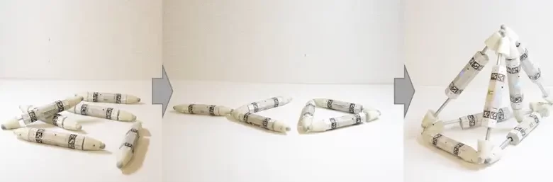 O protótipo atual é chamado de Truss Link — um módulo em forma de bastão com extremidades magnéticas. O funcionamento lembra o brinquedo Geomag, com peças que se conectam livremente via ímãs para formar diferentes estruturas.