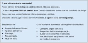 “Não basta termos inteligência artificial. Precisamos da inteligência emocional coletiva. E isso exige neurociência aplicada, ego consciente e ambientes humanos preparados para coexistir — não competir — com a tecnologia.”