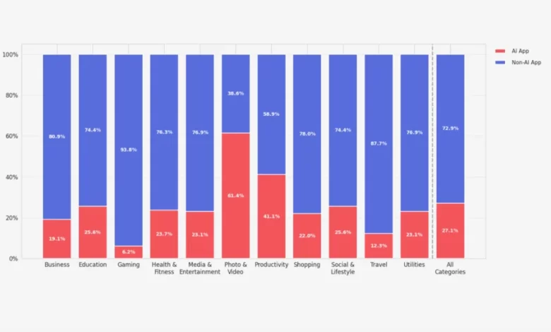 Mesmo assim, o crescimento é evidente: atualmente cerca de um em cada quatro aplicativos já incorpora IA.